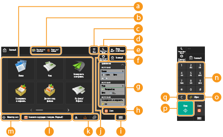 С помощью этих кнопок можно открыть экраны основных функций, например «Копия» и «Сканировать и отправить».