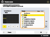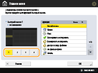 Для функций, представленных на экране <Главный>, можно создавать кнопки быстрого вызова. С помощью таких кнопок функции можно запускать, не возвращаясь на экран <Главный>. Для создания клавиши быстрого доступа необходимо войти в систему аппарата с полномочиями администратора. Вход в систему аппарата