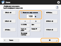 Если при копировании коэффициент масштабирования копии совпадает с форматом исходного оригинала, небольшая часть изображения у краев копируемого изображения может отсутствовать. Чтобы избежать этого, уменьшите размер изображения. Для этого последовательно нажмите <Коэффициент копирования>