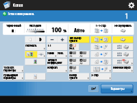 В этой области представлены сведения о состоянии параметра, такие как коэффициент масштабирования, формат бумаги, количество копий и т. д. Чтобы копирование было выполнено должным образом, обязательно проверяйте параметры в этом разделе экрана. Для изменения значений нажмите кнопку, расположенную под этой областью. Основные операции копирования