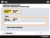 На экране основных функций факса укажите адресата. Экран основных функций факса