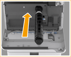 Если тонер заканчивается или закончился, отображается сообщение с предложением подготовить новый картридж или выполнить замену картриджа. Подготовьте новый картридж или выполните замену картриджа в соответствии с отобразившимся сообщением.