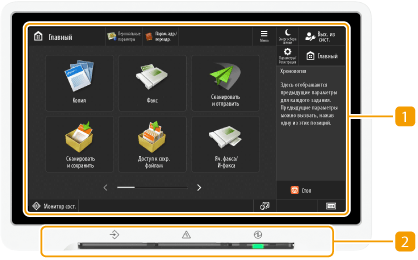 Мигает при выполнении таких операций, как отправка или печать. Горит зеленым светом при наличии документов в очереди на обработку.