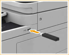 К порту USB, который расположен справа на аппарате, можно подключить запоминающее устройство USB и напечатать данные непосредственно с него. Документы, отсканированные на аппарате, можно сохранить непосредственно на запоминающее устройство USB.