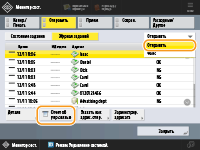 Для документов, отправленных по электронной почте, в списке приводятся результаты передачи данных между аппаратом и почтовым сервером, а не между аппаратом и адресатом.