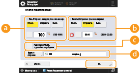 Невозможно настроить параметры печати отчета об управлении связью, если для параметра <Показать журнал заданий> в списке параметров <Параметры управления> установлено значение <Выкл.>. Кроме того, если изменить значение параметра <Показать журнал заданий> в списке параметров <Параметры управления> с <Выкл.> на <Вкл.>, значение параметров печати отчета об управлении связью <Печ./Отправка каждого указ. кол-ва пер.> и <Печать/Отправка в указанное время> автоматически меняется на <Выкл.>. <Показать журнал заданий>