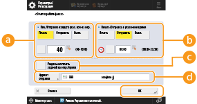 Невозможно настроить параметры печати отчета об управлении связью, если для параметра <Показать журнал заданий> в списке параметров <Параметры управления> задано значение <Выкл.>. Кроме того, если изменить значение параметра <Показать журнал заданий> в списке параметров <Параметры управления> с <Выкл.> на <Вкл.>, значение параметров печати отчета о работе факса <Печ./Отправка каждого указ. кол-ва пер.> и <Печать/Отправка в указанное время> автоматически меняется на <Выкл.>. <Показать журнал заданий>