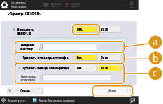 Нажмите <Имя пользователя> или <Пароль> и введите учетные данные. Если указано имя в поле <Имя пользователя>, отключите параметр <То же имя польз., что и для входа>.
