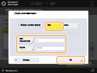 Чтобы включить функцию аутентификации на прокси-сервере, нажмите эту кнопку и укажите учетные данные. На появившемся экране нажмите кнопку <Вкл.>, введите имя пользователя и пароль для доступа к прокси-серверу, а затем нажмите кнопку <OK>.