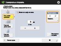 Если размер, отображаемый для параметра <Формат оригин.>, отличается от заданного формата книги, нажмите кнопку <Изменить>, чтобы выбрать размер. Сканировать можно только оригиналы форматов, указанных на сенсорном дисплее.