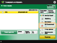 На экране основных функций сканирования укажите адресата. Экран основных функций сканирования