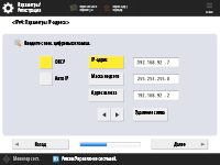 Чтобы задать IP-адрес вручную, нажмите кнопку параметра <DHCP> или <Авто IP>, чтобы отключить его, нажмите кнопки <IP-адрес>, <Маска подсети> и <Адрес шлюза>, после чего введите соответствующие значения, а затем нажмите кнопку <Далее> или <OK>.