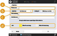 Konfigurering av detaljerade inställningar för tvingad parkering av utskriftDu kan göra detaljerade inställningar för dokument som parkerats, t.ex. hur länge de ska sparas och hur de ska visas. <Utskrift>