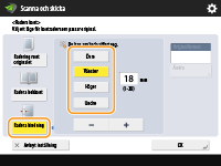 Tryck på <Centrera> eller <Sidor>, och ange varje raderingsbredd.