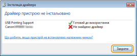 Якщо в комплекті з принтером не надається USB-кабель, вам необхідно підготувати його самостійно. Переконайтеся, що на вашому USB-кабелі є такий знак: ![]() Якщо при підключенні USB-кабелю відобразиться екран автоматичного налаштування Plug and Play на зразок того, що показаний нижче, клацніть [Закрити] або [Скасувати], щоб закрити його. ![]() |