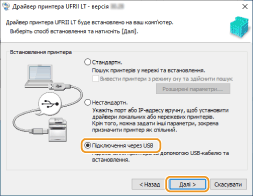 1 | Виберіть [Підключення через USB] та натисніть [Далі]. ![]() | |
