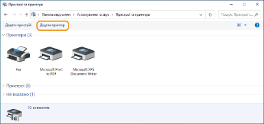 Натисніть [Додати принтер] або [Додавання принтера].