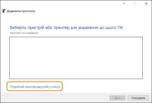 Якщо використовується Windows 8.1/10/Server 2012/Server 2012 R2/Server 2016/Server 2019, натисніть [Потрібний принтер відсутній у списку].