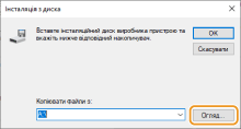 Зазначте папку, в якій зберігається драйвер принтера, як наведено нижче.