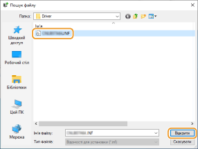 Зазначте папку, в якій зберігається драйвер принтера, виберіть файл Inf та натисніть [Відкрити].