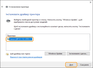 Виберіть свій принтер і натисніть [Далі].