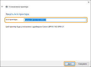 Змініть ім’я принтера відповідним чином та натисніть [Далі].