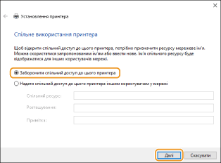 Виберіть [Заборонити спільний доступ до цього принтера] та натисніть [Далі].