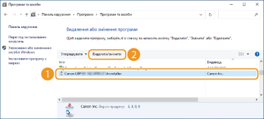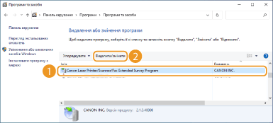 Виберіть [Canon Laser Printer/Scanner/Fax Extended Survey Program] та клацніть [Видалення] або [Усунути].