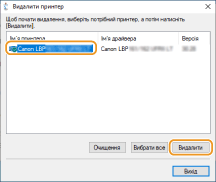 Виберіть принтер, який необхідно видалити, та клацніть [Видалити].