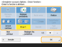 Pour la fonction Copie, vous pouvez enregistrer les réglages favoris configurés sous forme de raccourci depuis <Réglages fav. prédéfinis>.