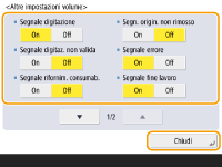 Impostare ciascun suono di conferma/avvertimento e premere <Chiudi>.
