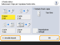 Premere <OK> per applicare le impostazioni e premere <Annulla impost.> per eliminare le modifiche e ripristinare le impostazioni precedenti.