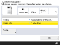 Se si imposta <Fascicolazione automatica> su <On>, la modalità di fascicolazione viene impostata automaticamente quando si posizionano gli originali nell'alimentatore. <Fascicolazione automatica>