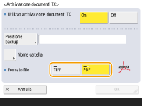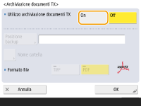 Premere <On> per <Utilizza archiviazione documenti TX>.
