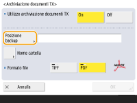Premere  (Impost./Registr.)  <Impostazioni funzione>  <Invio>  <Impostazioni comuni>  <Archiviazione documenti TX>.