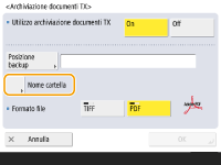 È possibile selezionare <Informazioni mittente>, <Data> o <Off> per suddividere in categorie i nomi delle cartelle. <Archiviazione documenti TX>