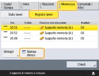 1 | Premere <Copia/Stampa> <Registro lavori>. |