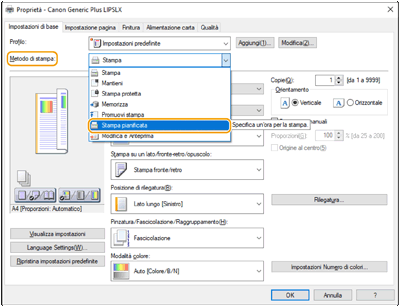 ![]() | È possibile definire un orario per l'avvio della stampa, funzionalità utile quando si stampano grandi quantità di documenti di notte, ecc. |