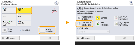 Wenn in <Dateiformat> eine Sprache für OCR ausgewählt ist: