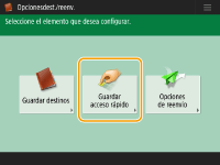![]() | Resulta práctico registrar un destino de uso frecuente en un botón de acceso directo. Así, puede especificar rápidamente un destino con solo pulsar un botón. Además de registrar un número de fax o una dirección de correo electrónico en un botón de acceso directo, también puede registrar la ubicación de una carpeta de un servidor de archivos (dirección IP y ruta) para utilizar al guardar datos escaneados. |