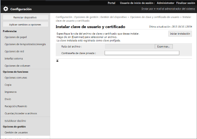 Haga clic en [Gestión del dispositivo]  [Opciones de clave y certificado de usuario].