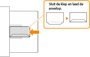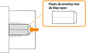 Plaats enveloppen in de papierlade of in de papiertafel. Voorkom bij het afdrukken van enveloppen papierstoringen en kreukels door eventuele krullen glad te strijken voor het plaatsen. Let ook op de invoerrichting van de enveloppen en welke kant naar boven wijst.