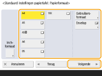 Druk op <X> of <Y> om met de numerieke toetsen de lengte van elke zijde in te voeren. ![]() Als u de papierformaten die u het vaakst gebruikt, opslaat onder knoppen <S1> tot <S4>, kunt u ze met één aanraking oproepen. Opslaan van vrij formaat papier (Papier van aangepast formaat) | |