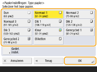 Als het geplaatste papiertype niet wordt weergegeven, drukt u op <Gedet. instel.> om die uit een lijst te selecteren.