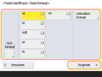 Selecteer het papierformaat en druk op <Volgende>.