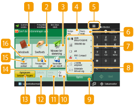 U kunt selecteren of u het adresboek en de snelkiestoetsen wilt verbergen om het gebruik van het adresboek te beperken. <Beperk gebruik adresboek>Sommige functies kunnen niet in combinatie met elkaar worden gebruikt. Knoppen die niet kunnen worden geselecteerd, worden lichtgrijs weergegeven. Bovenin het scherm wordt het totaal aantal gespecificeerde bestemmingen weergegeven. |