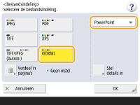 1 | Selecteer <OOXML> selecteer <PowerPoint> uit de vervolgkeuzelijst.![]() ![]() Druk om de taal te wijzigen die voor OCR is gebruikt op <Stel details in> <Wijzigen> , selecteer de taal druk op <OK>. |