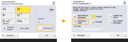 1 | Selecteer <PDF> en druk op <Stel details in> <OCR (Doorz. tekst)>.![]() |