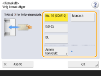 2 | Velg typen konvolutter. ![]() Trykk på <OK> og gå videre til trinn 5. |