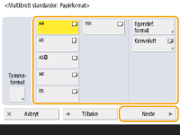 Trykk på <X> eller <Y> for å angi lengden på hver side med talltastene. ![]() Hvis du registrerer papirstørrelsen som du bruker ofte med knappene <S1> til <S4>, kan du hente dem frem med ett trykk. Registrere papir i fritt format (egendefinert papirstørrelse) | |